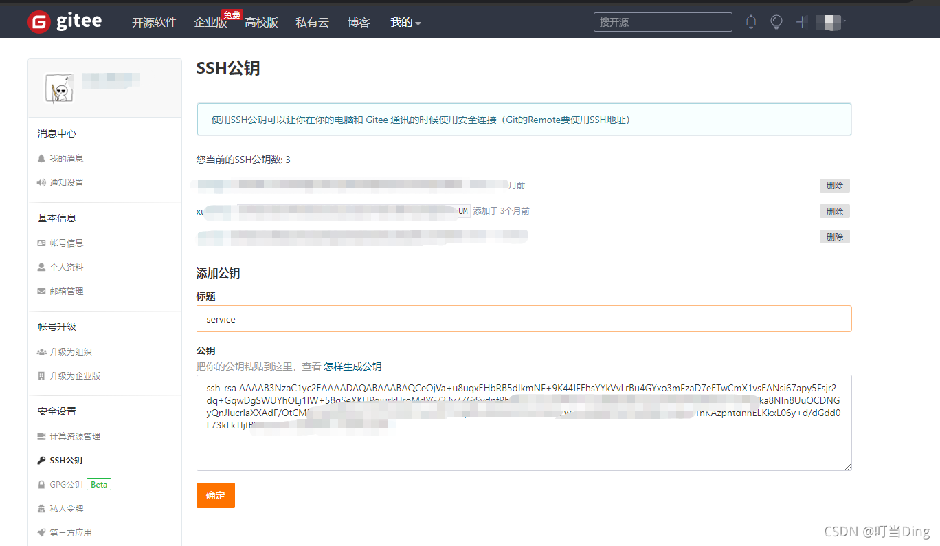 3、然后将私钥 id_gitee_rsa 添加到 gitee 代理中