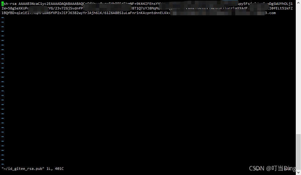 5、把如上密钥复制出来粘贴在你的gitee上,使用 :wq 去关闭vim编辑器
