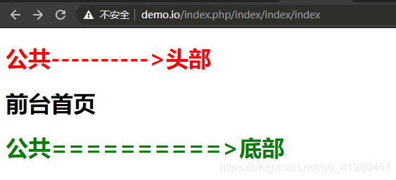 最后访问 http://demo.io/index.php/index/index/index 或者直接访问 http://demo.io 出现如下界面即表示公共头部与底部复用成功